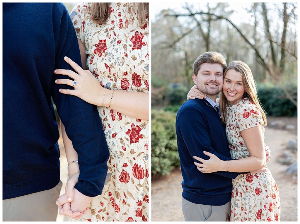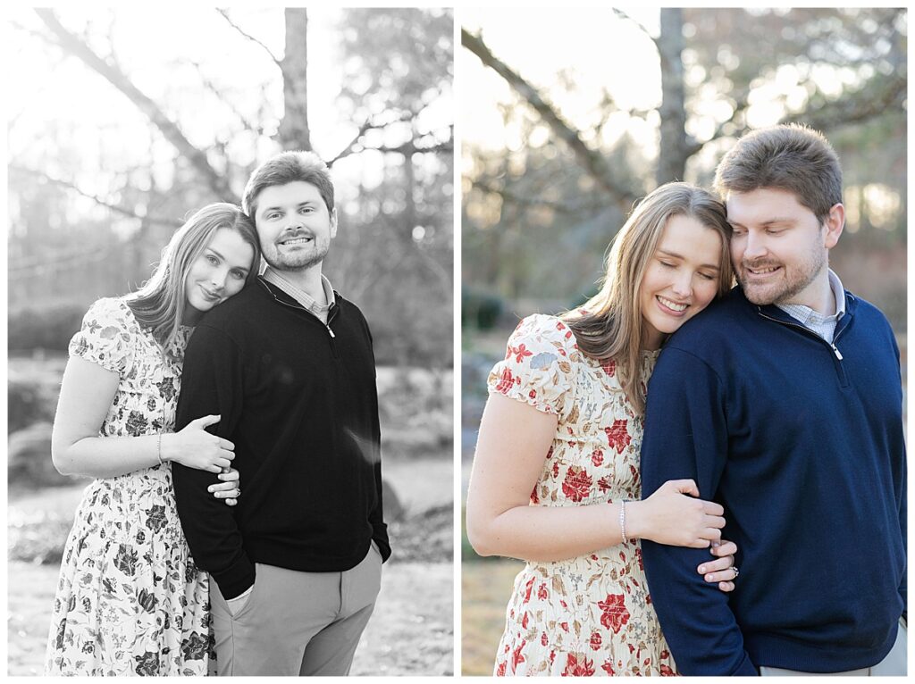This January, I had the pleasure of capturing Christian and Scout’s engagement photos at Birmingham Botanical Gardens. Despite the colder weather and seasonal landscape changes, it was still a perfect backdrop for evergreens, color, and gorgeous sunlight, making for very classic photos!